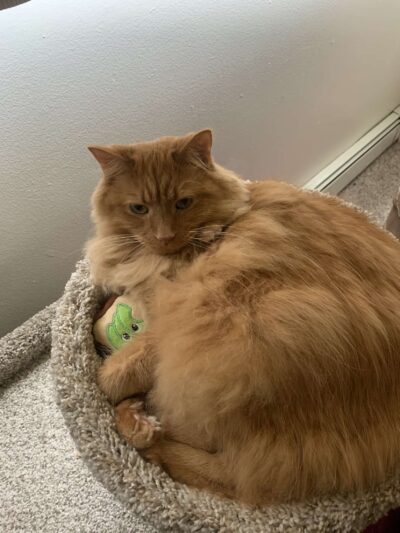 Goldfish, the sweetest, kindest and most silly cat. May you rest at ease surrounded by shredded cheese, feathers, and love.