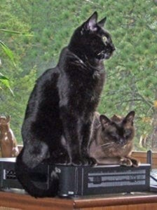Razi and Ben warm on top of satellite equipment at our mountain house near Estes Park. Razi was 11 when we rescued her and she died at 16, as did Ben. Ben was my best friend, other than my wife, during the difficult times after my wife had a stroke and I was her caregiver for the last 12 years of her life. We had 14 cats over 53 years. Ben was very special to both of us. I will miss him every day. Thanks for this opportunity.